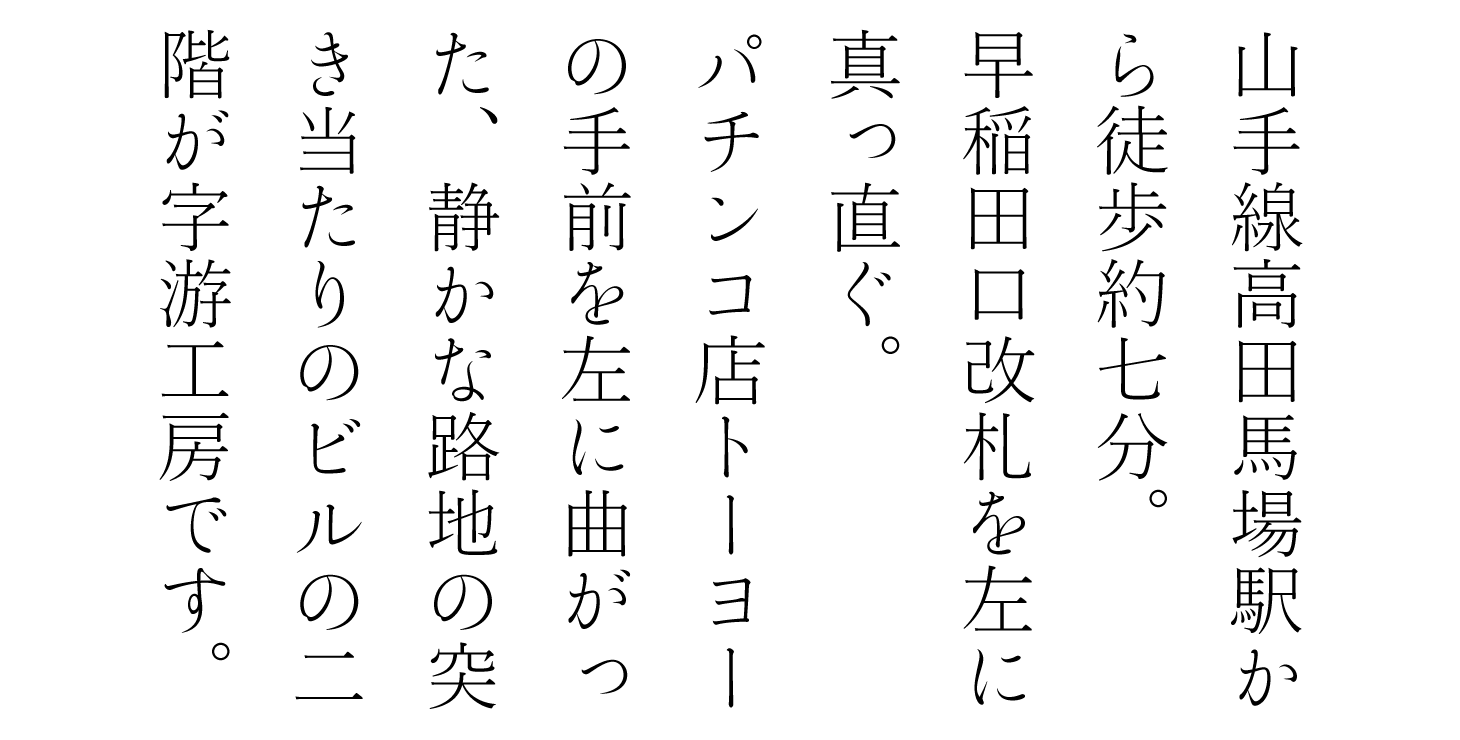 *漢字は収容されておりません。組見本は游明朝体と混植しています。